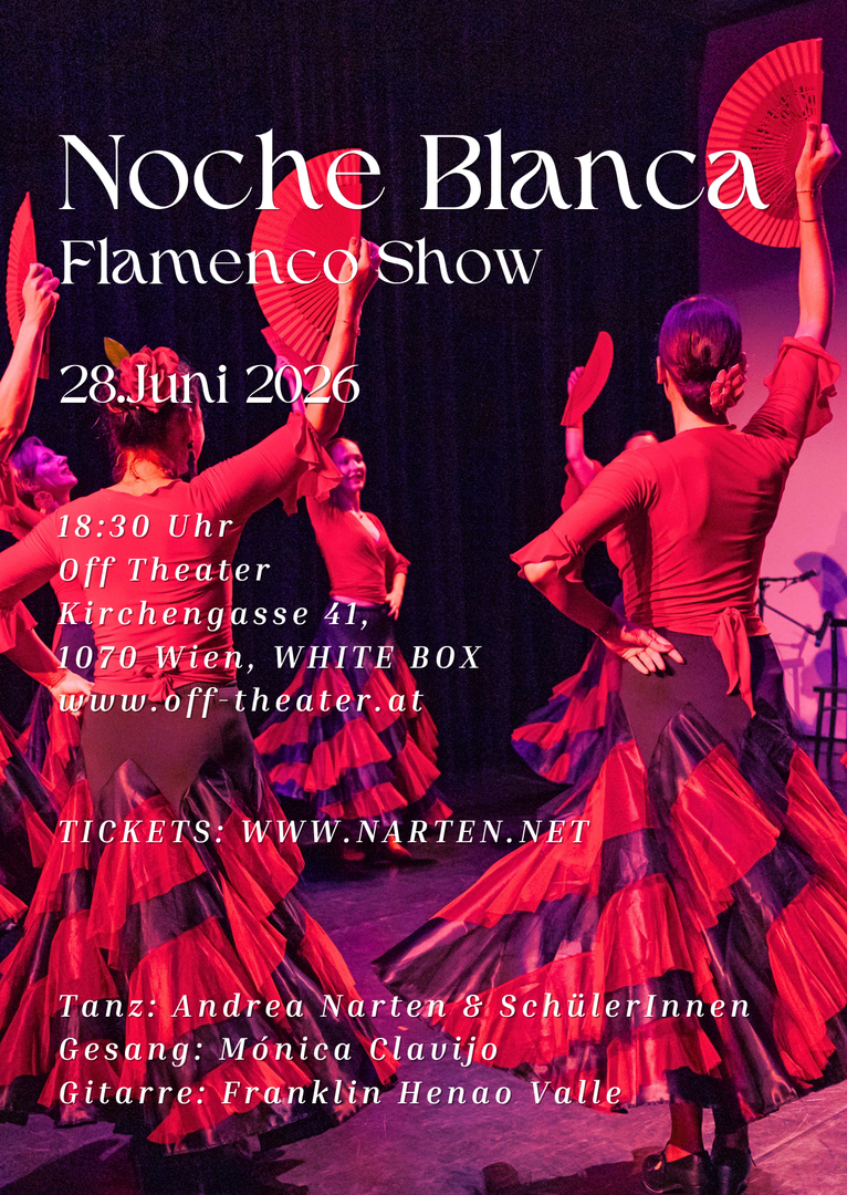 Andrea Narten absolvierte ihre Flamenco Tanz-Ausbildung in Spanien, Deutschland, Österreich, Slowakei bei renommierten Flamenco-Lehrern wie Joaquín Grilo, Patrícia Guerrero, Rafaela Carrasco, Belén